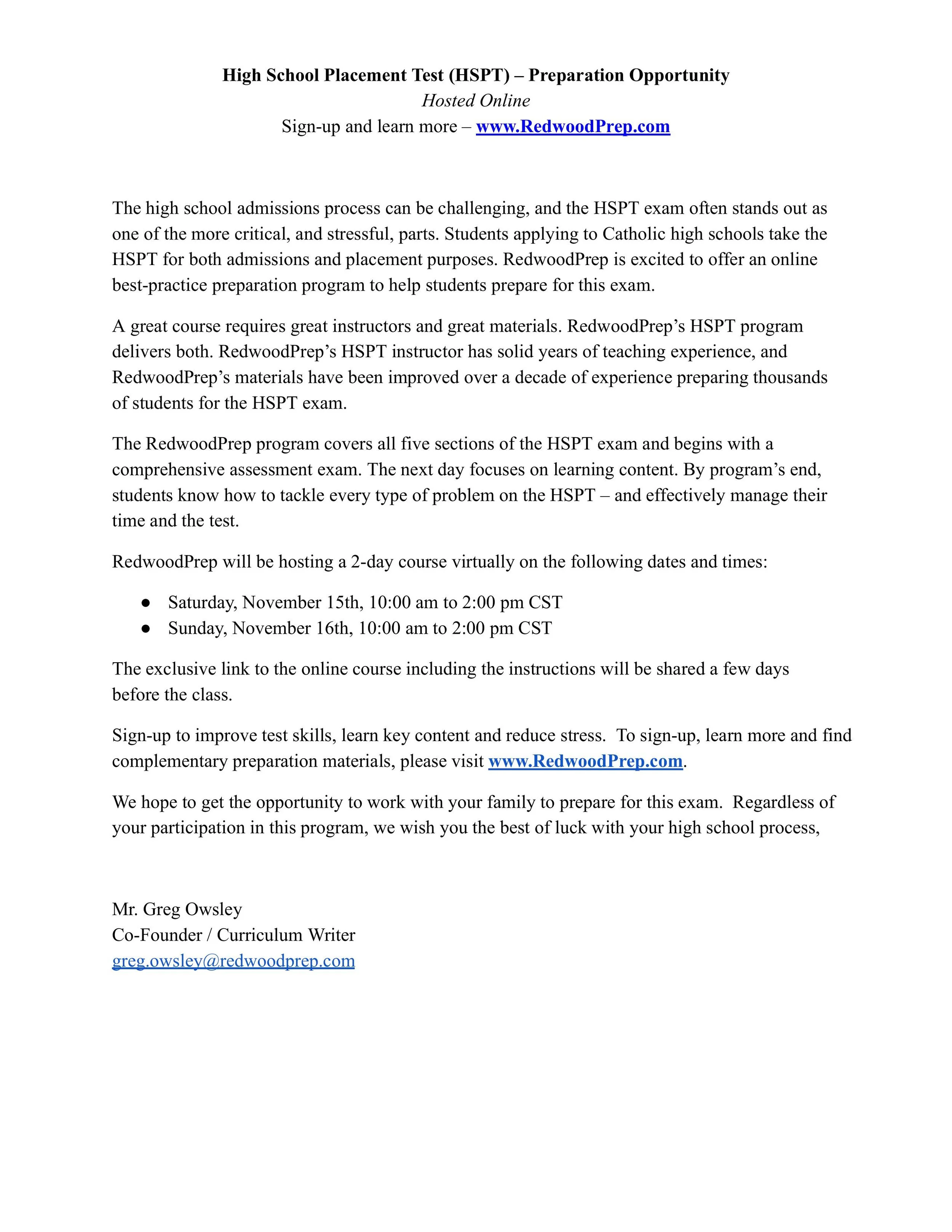 November 2025 ONLINE HSPT Preparation Course www.RedwoodPrep.com US_Middle School 6-8, The BuzzCarolina BlazkowSeptember 26, 2025 Facebook0 Twitter LinkedIn0 Reddit Tumblr Pinterest0 0 Likes