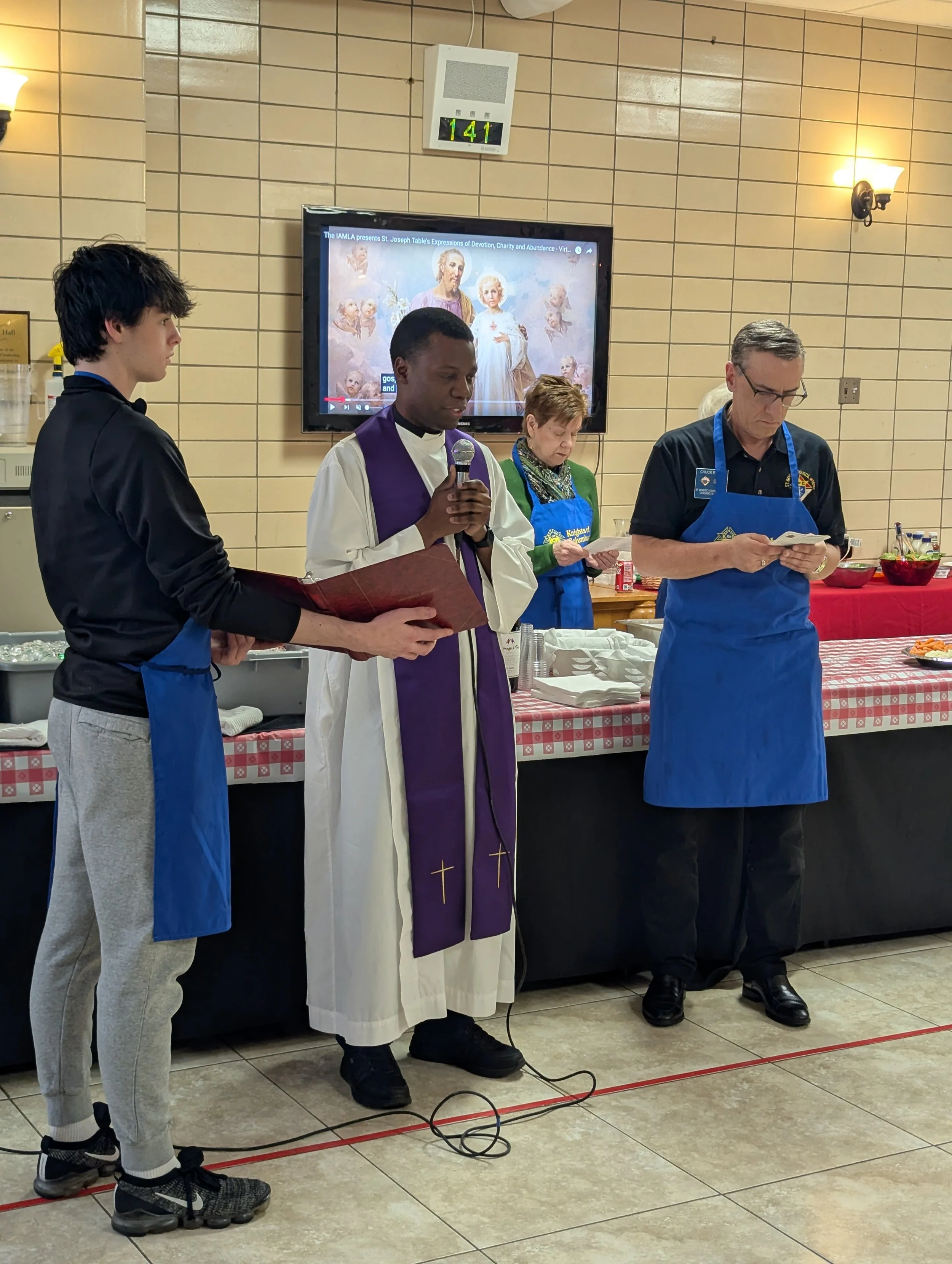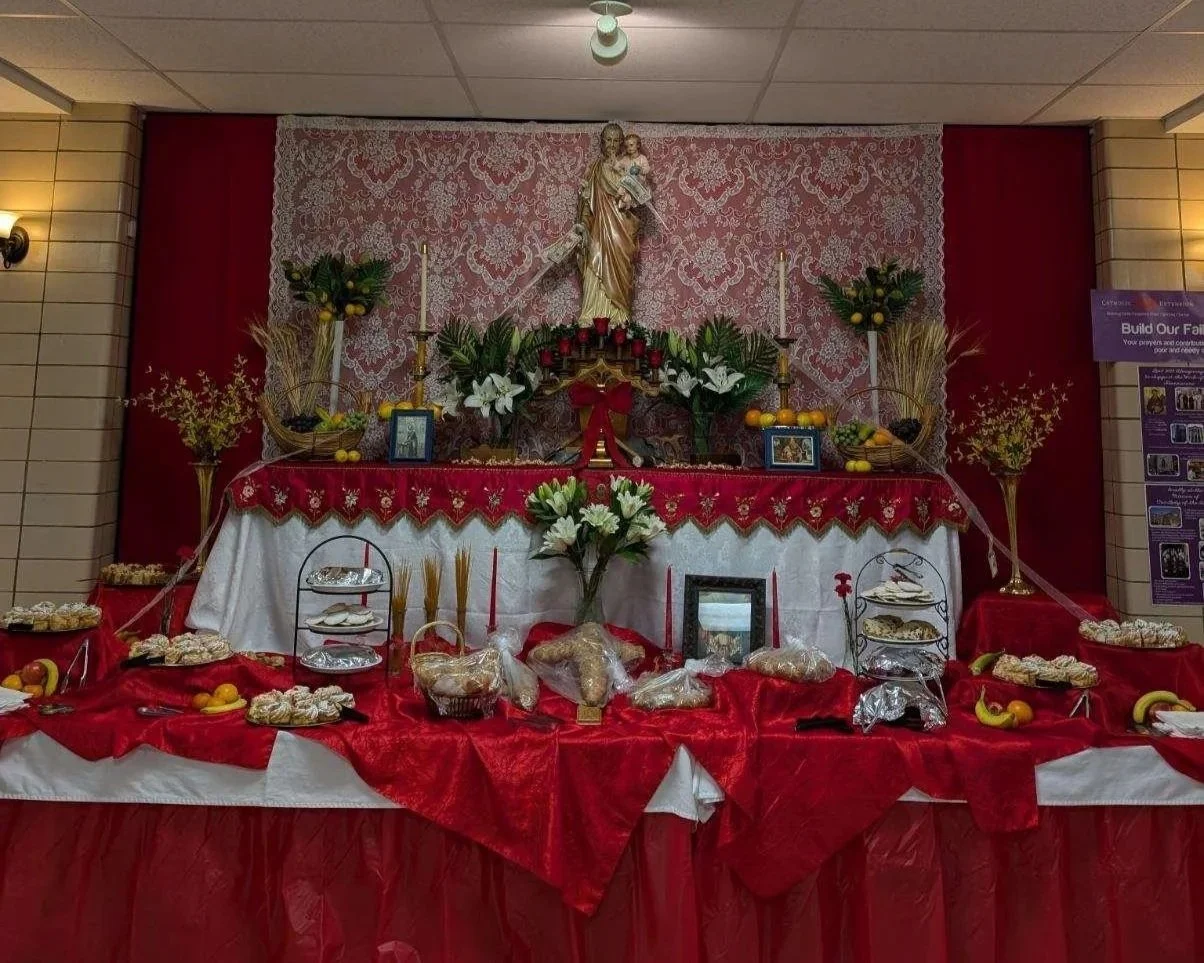 Over the years this tradition has taken various forms from a sweet table prepared by the ladies of our parish to the most recent beautiful Sunday dinner spread hosted by the Aluise family, and last year for the first time hosted by the Knights of Columbus.