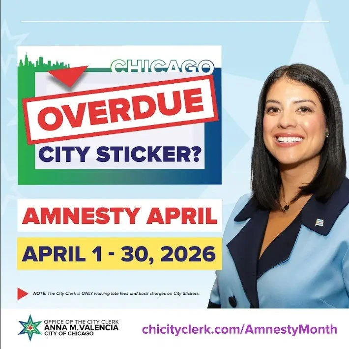 We are excited to announce City Clerk Anna Valencia is bringing back Amnesty Month during the month of April. Our office is waiving City Sticker late fees and back charges to drivers from Wednesday, April 1 to Thursday, April 30, 2026. We’re expanding access by offering amnesty at three Saturday Mobile City Hall events and on the City Clerk’s 24/7 online store ezbuy.chicityclerk.com.